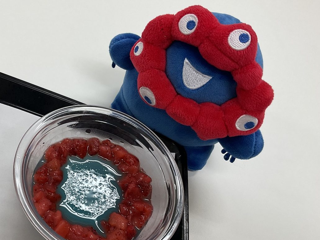 デザートにミャクミャクゼリーを、厨房の方々が一つ一つ作ってくださいました。